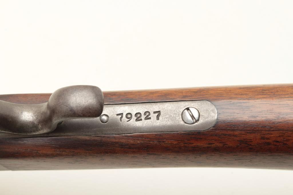and case hardened finish, wood stocks, S/N 79227, in overall very good condition with considerable blued finish remaining on barrel and traces of case colors on receiver and lever; bore should clean to good, crisp action and markings, good wood stocks. (C&R). Est.: $200-$400.