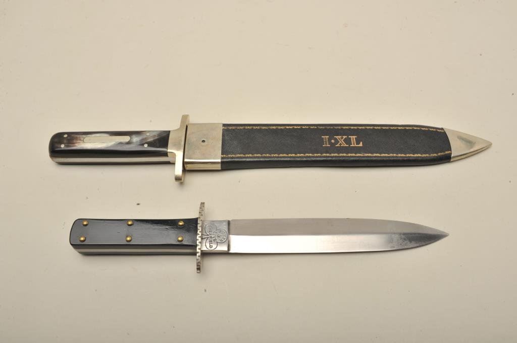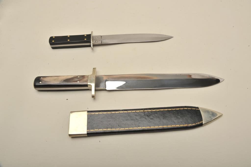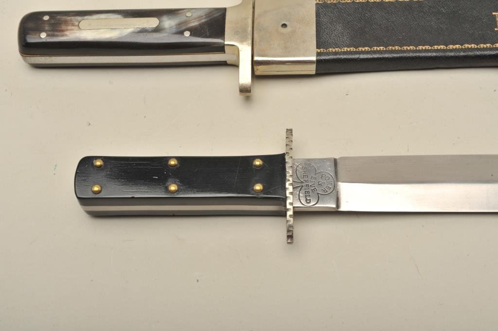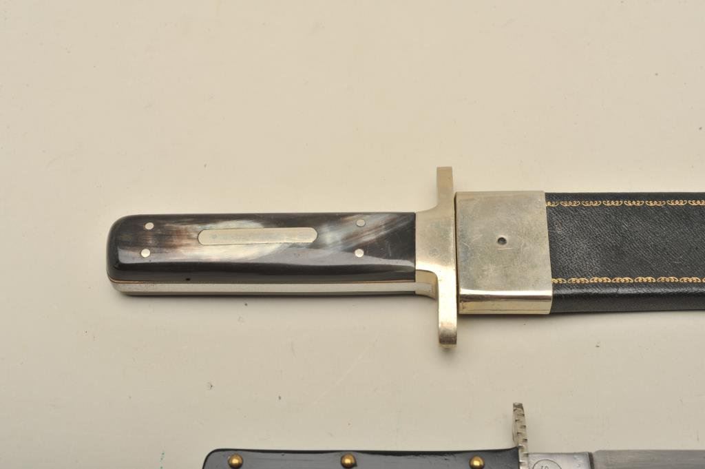 along with 1960s-1970s IXL bowie with horn scabbard. 15.25" overall.