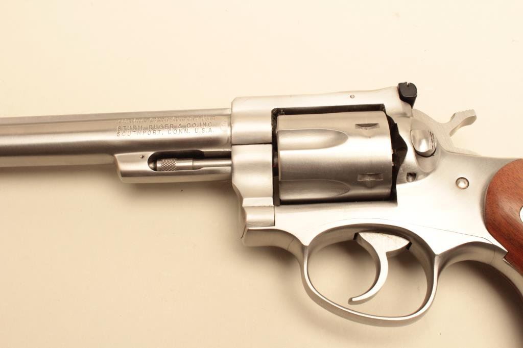 stainless, checkered wood medallion grips, S/N 155-91254, in overall very good to near fine condition with a very good + bore, crisp action, sharp markings and fine grips. (Modern/PPT). Est.: $300-$600.