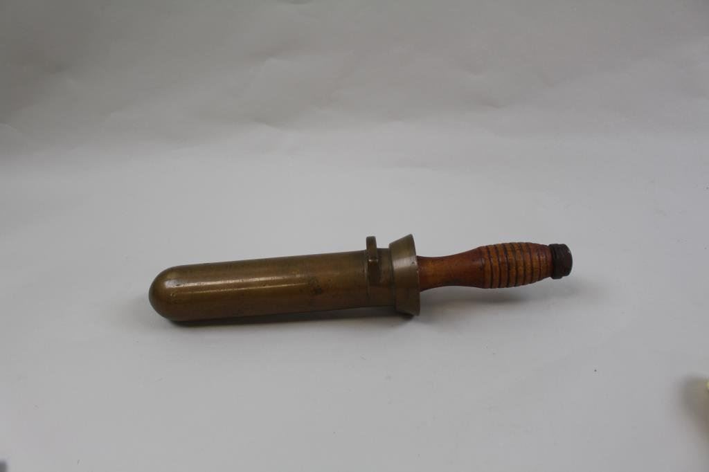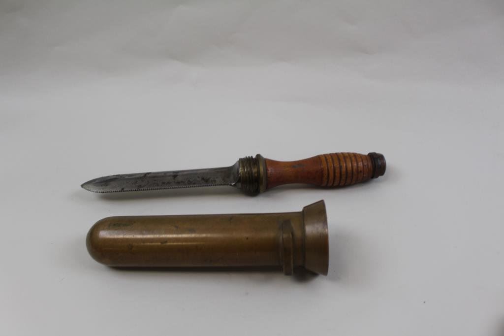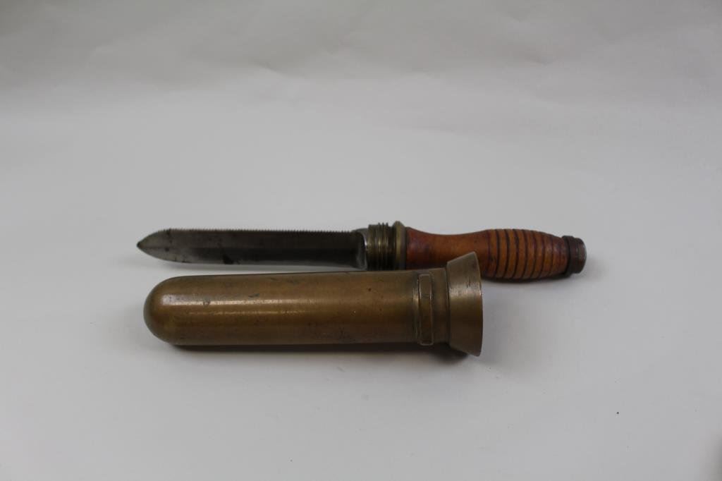 Lot 1924 US Navy divers knife, brass hard hat style, saw tooth