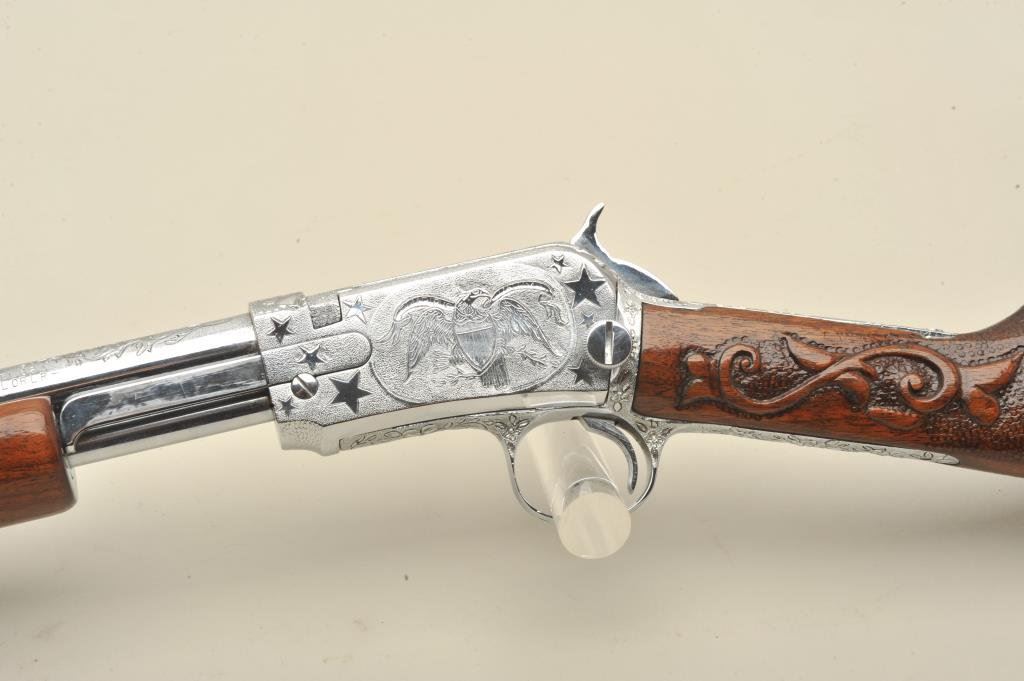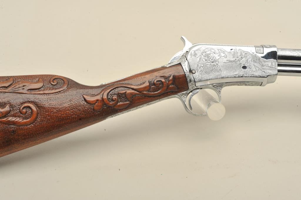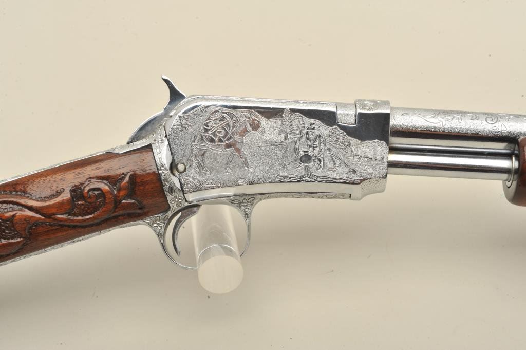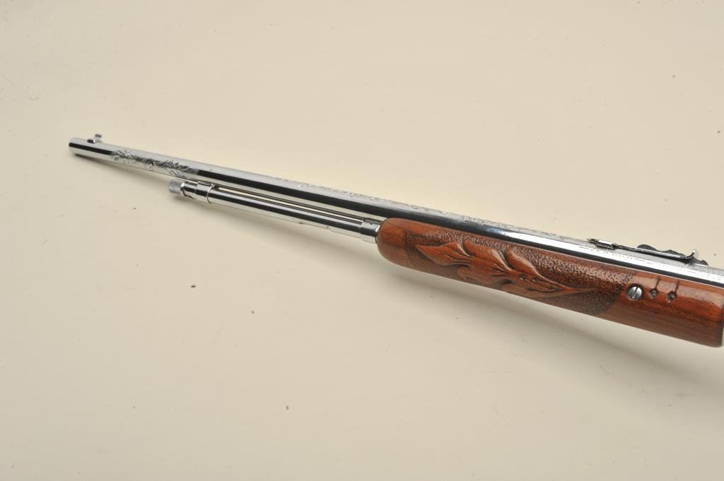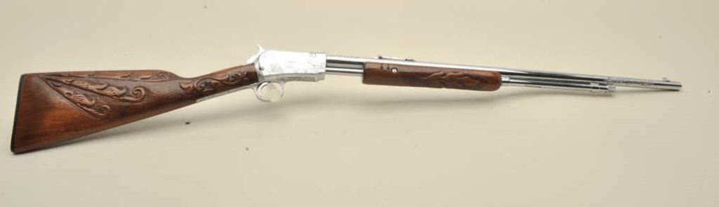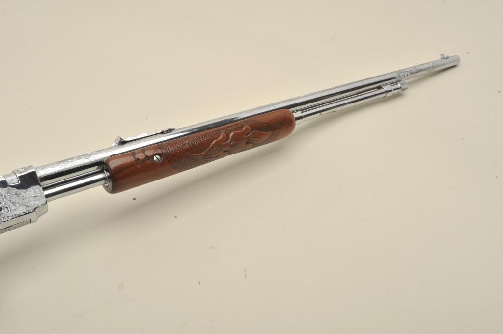 Lot 1942 Winchester Model 62A pump action takedown rifle, fancy engraved, nickel