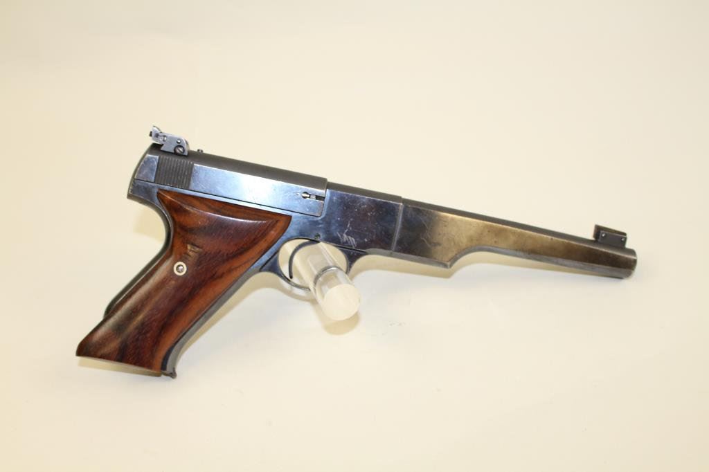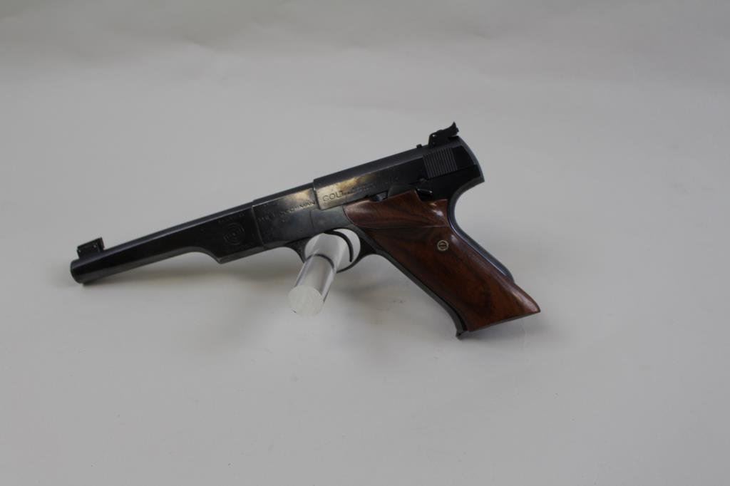 replacement target grips. Pistol retains approximately 95-97% original blue with losses to the edges and high points. Very good bore, great action. Includes one correct Match Target marked magazine. Match Targets are highly sought after pre war target pistols and were the standard of shooting competitions like Camp Perry. (C&R/PPT) Est.: $600-$1200
