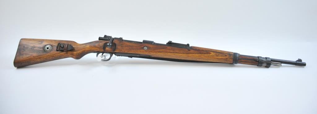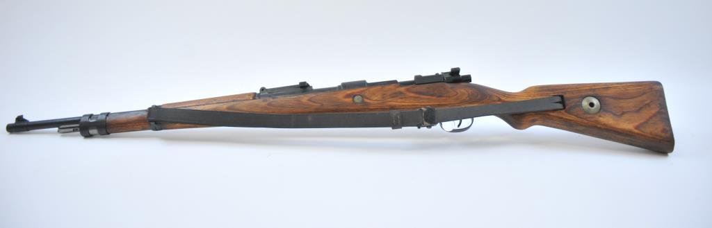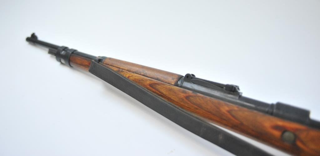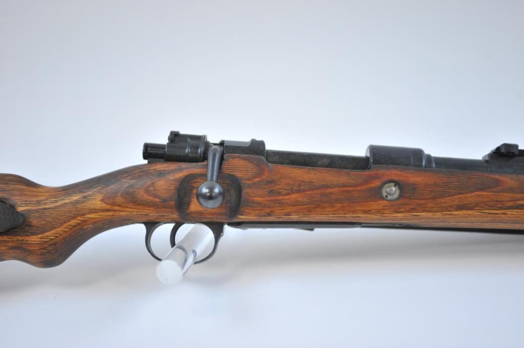 U code and 43 date on the breech, S/N 5418. The bolt and small parts are not matching but remarked with serial number scratched on the bolt and stamped into the wood and on trigger guard. An arsenal re-issue for 2nd country post WWII. No import marks. Good action and very good bore. German sling included. Very good plus as arsenal re-built. Possibly Israel purchase post war. (C&R) Est.: $300-$600