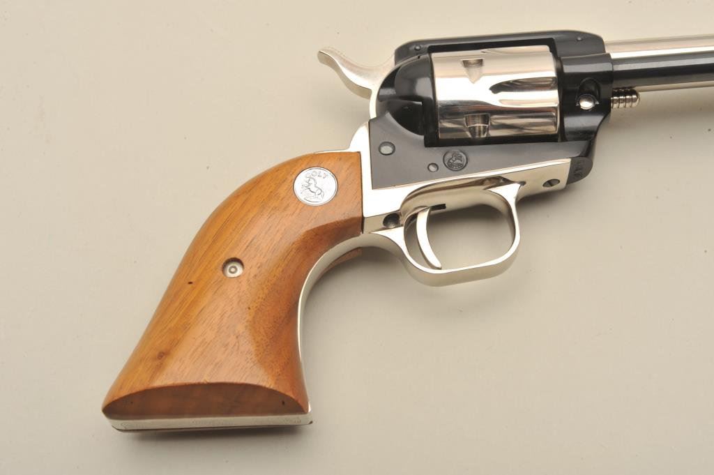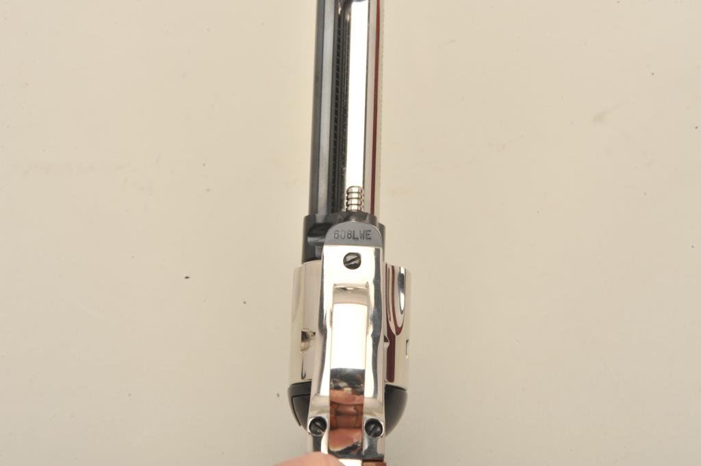 barrel, 2 tone blue and nickel finish and wood grips, S/N 608LWE. In present display case. No evidence of firing or use. 99% to mint. Slight handling only. (C&R/PPT) Est.: $400-$800