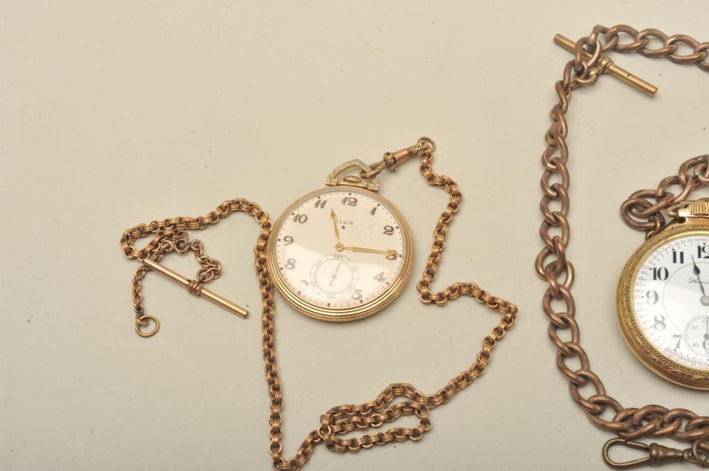 Lot 2045 Elgin open face pocket watch with chain, running, GF case.