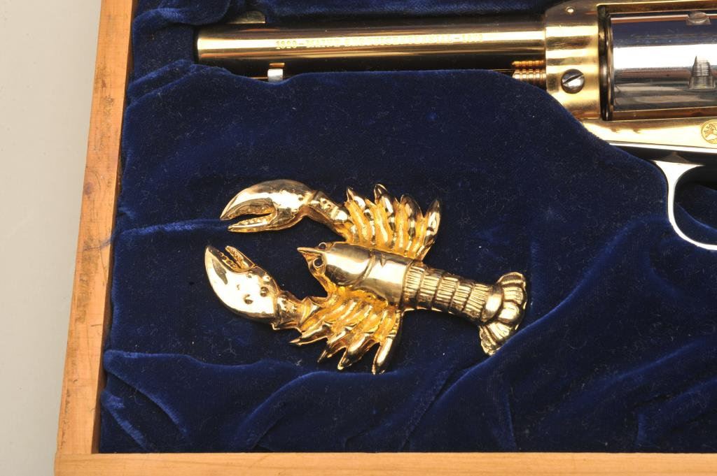 with gold plated lobster, S/N 1944MES showing gold and nickel finish. Excellent to mint. No evidence of firing or use. 99% to new. (C&R/PPT) Est.: $250-$500