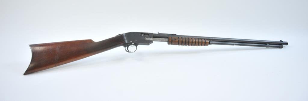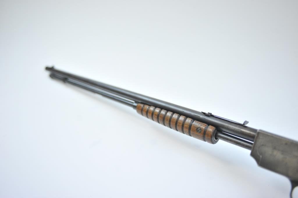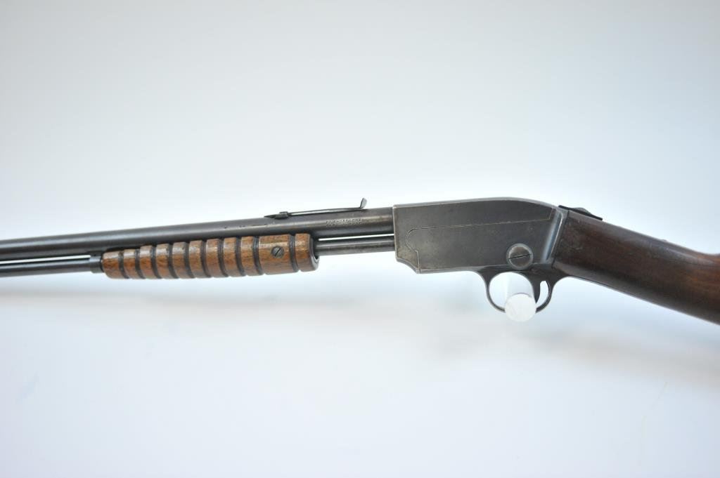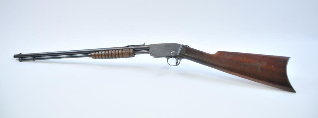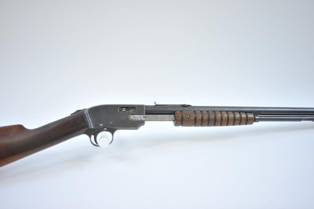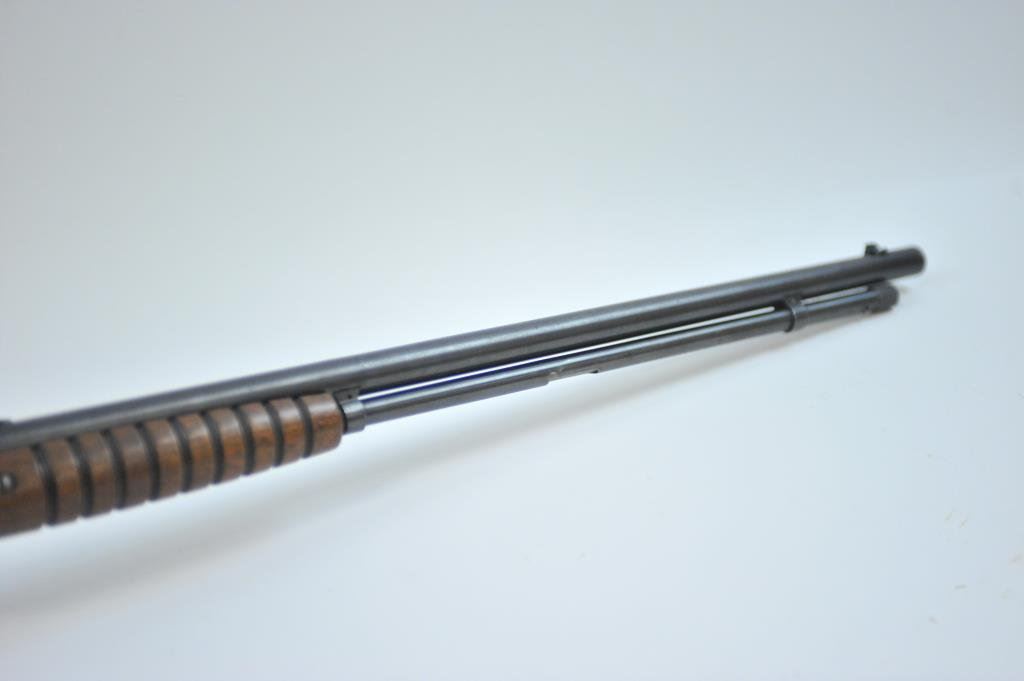 39421. Similar in style and design to the Remington Model 12 but seldom found. 60%-80% thinning and toning blue. Very good wood with minor imperfections and slight scratches. The bore is very good plus and the action is tight. Est.: $175-$350