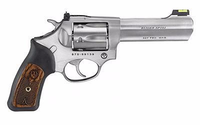 Ruger, SP101, Double-Action Revolver, 327 Fed Mag, 4.2" Barrel, Satin Stainless Finish, Stainless Steel, Black Rubber & Engraved Wood Grips, Adjustable Rear & Fiber Optic Front Sight, 6Rd