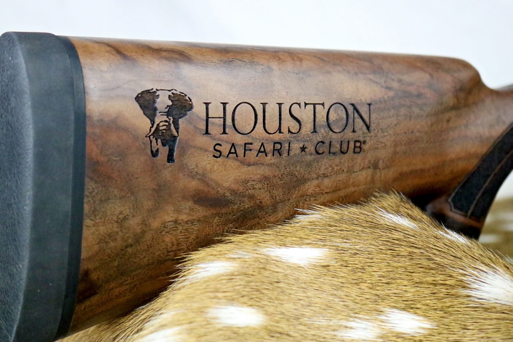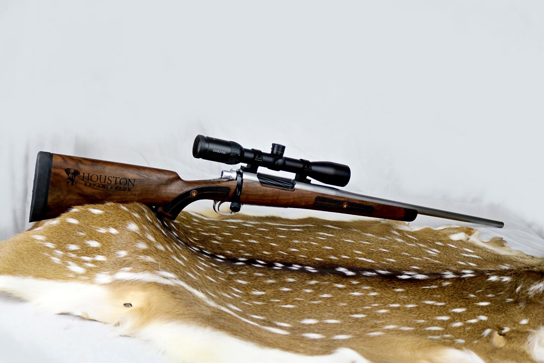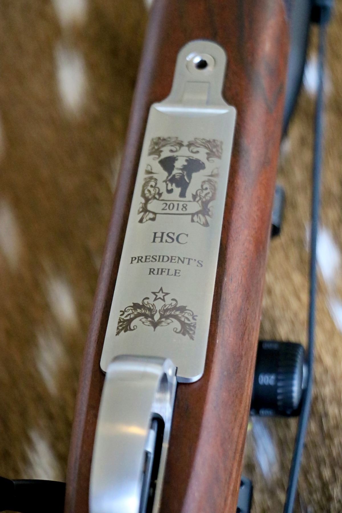 "The 2018 HSC President’s Rifle was handcrafted by the Texas-based rifle manufacturer Stealth Precision Firearms. This sub-1/2-MOA precision rifle chambered in .300 Winchester Magnum features a precision-machined Stiller action and Hart stainless steel barrel fitted by Tommy Shurley into one of Shurley Brothers' finest hardwood rifle stocks. The rifle is outfitted with a Jewell HVR trigger and Swarovski Z6 2.5-14X44 riflescope fitted with a personalized ballistic cam matched to the Hornady Precision Hunter 200 gr ELD-X ammunition that we've hand selected for this rifle. Finally, beautiful buttstock and floorplate engravings commemorating this rifle's service as the 2018 HSC President’s Rifle finish off this functional masterpiece that delivers both aesthetically and functionally. Whether you are hunting pronghorn in the Texas Panhandle or moose in Saskatchewan, this precision rifle will help to make your hunt a successful one. Package includes 5 boxes of ammunition and an elephant hide rifle case.