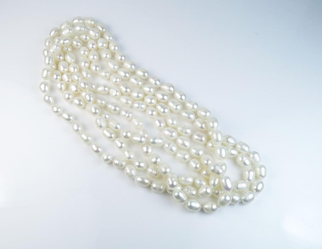 Nice ladies pearl necklace of 60 inches in length of nice colors and luster. Est:$200-400