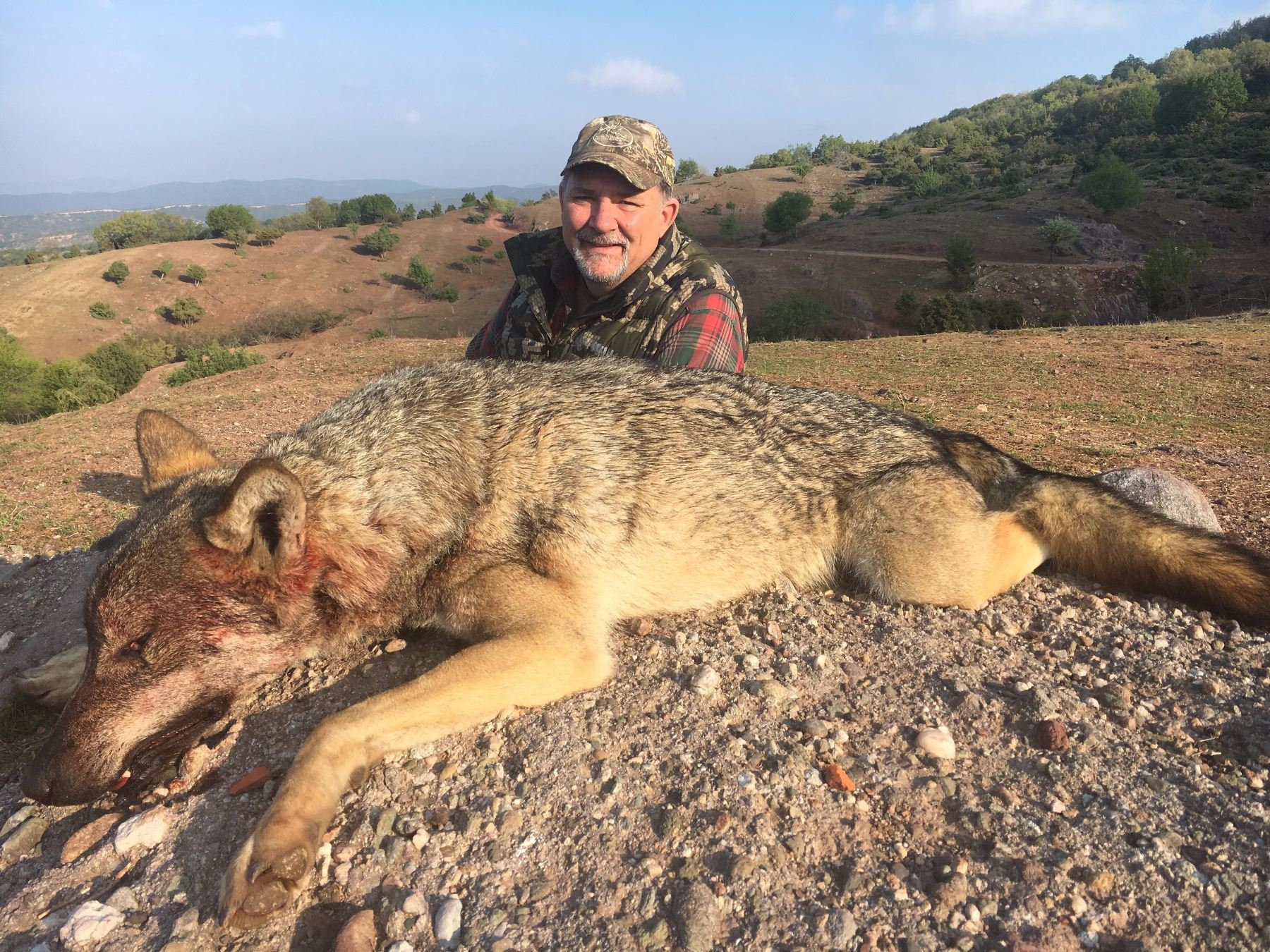 Safari International Macedonia was the first to implement organized wolf hunts in Macedonia, and through our methodical and persistent work, we have managed to satisfy over 300 hunters with wolf trophies from Macedonia. We guarantee a successful wolf hunt. Wolves can be hunted year-round and there are no limitations in regard to the gender or size. For best hide quality, we recommend hunting in January, February, March and April. This donation is for one hunter and one observer (guests may be added for $350/day for non-hunters and $750/day for hunters). Donation includes airport assistance, import rifle permit, ground transportation, meals, beverages and lodging during the hunt, professional hunter, skinning, salting and trophy care, hunting license, and hunting permit & insurance. The hunt will take place nearby Stip (city in central Macedonia). The hunting grounds spread over 35,000 acres of land. European Grey Wolf trophy fee is included. Other animals available for hunting are charged per our pricing list if the hunter wishes to add on. Weapons used: night or thermal vision mounted on rifles. Hotel and meals before and after the hunt, trophy packing and shipping ($500/box) CITES ($500 only for wolf hunting), airfare, phone calls, gratuities, and 18% VAT tax not included.