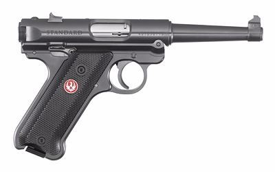 Ruger, Mark IV, Standard, Semi-automatic, 22LR, 4.75" Barrel, Alloy Frame, Blue Finish, Checkered Synthetic Grips, 10Rd, 2 Mags, Fixed Sights