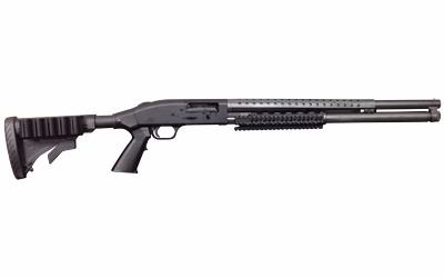 Mossberg, Tactical Tri-Rail, Pump Action Shotgun, 12 Gauge, 20" Barrel, 3" Chamber, Black Finish, ATI Shell Holding Stock, Cylinder Bore, 8Rd, Surefire Picatinny Forend, Heat Shield