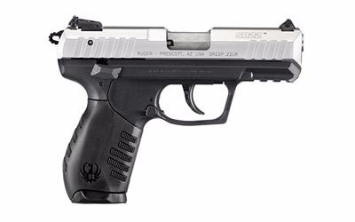 Ruger, SR22, Rimfire Pistol, 22 LR, 3.5" Barrel, Silver Anodize Finish, Aluminum Slide, Black Polymer Frame, Adjustable 3-Dot Sights, 10Rd