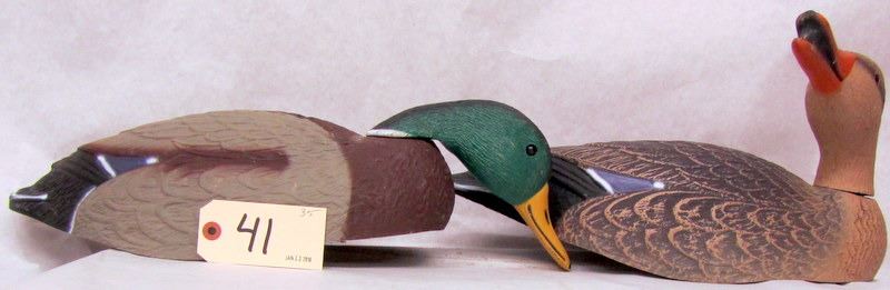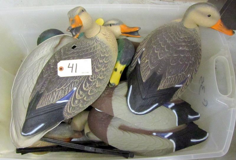 12 SHELL HEN/DRAKE DECOYS WITH STAKES
