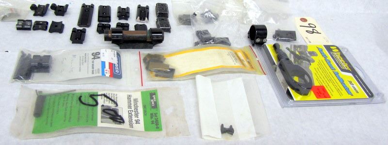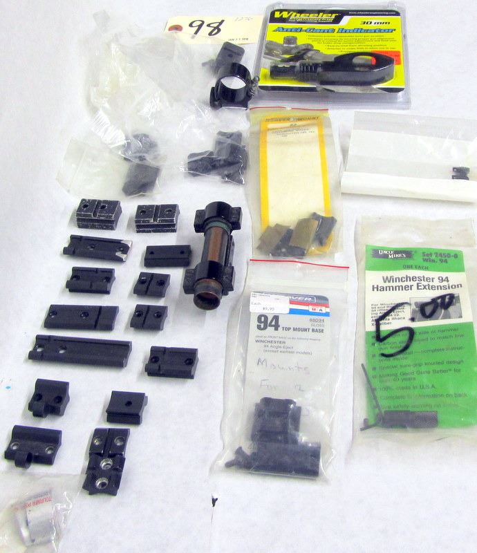A NUMBER OF VARIOUS SCOPE BASES, SHIMS, NEW IN PACKAGE 30 MM ANT--CANT INDICATOR, HAMMER EXT. FOR A WIN. 94 30-30