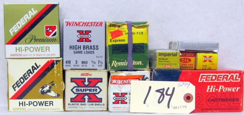 25 RNDS 28 GA 2 3/4" # 8, 25 RNDS 28 GA. 2 3/4" # 7 1/2, 25 RNDS 410 GA. 3" # 7 1/2, 18 RNDS 410 GA. 3" # 6, 14 RNDS 410 GA. 3" # 7 1/2, 25 RNDS 410 GA 2 1/2" # 5, 5 RNDS 410 GA 2 1/2" SLUGS, 341 RNDS 22 LR