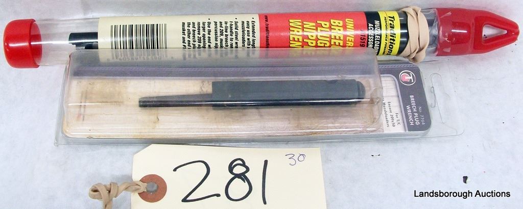 ONE THOMPSON CENTRE NO.7764 BREECH PLUG WRENCH NEW IN PACKAGE, AND ONE TRADITIONS UNIVERSAL BREECH PLUG AND NIPPLE WRENCH