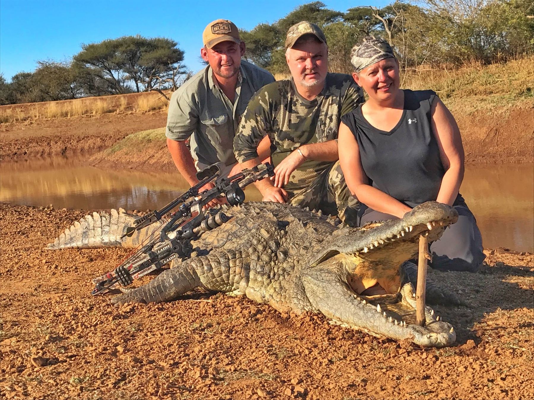 Donation: This is an 8-day Nile crocodile and blue wildebeest hunt for 2 hunters and 2 non-hunters in South Africa. Trophy fees are included for each species mentioned to be shared by hunters. Hunters can upgrade and take a 2nd crocodile at the discounted price of $4,900 or a Cape buffalo at $9,900.