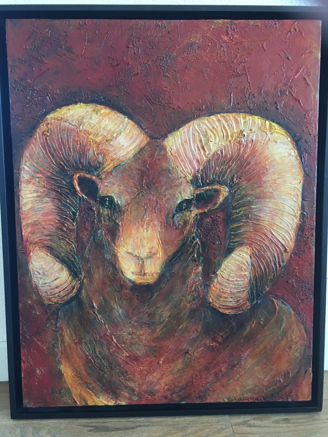 Lot 4 BIGHORN SCULPTED PAINTING 24X32