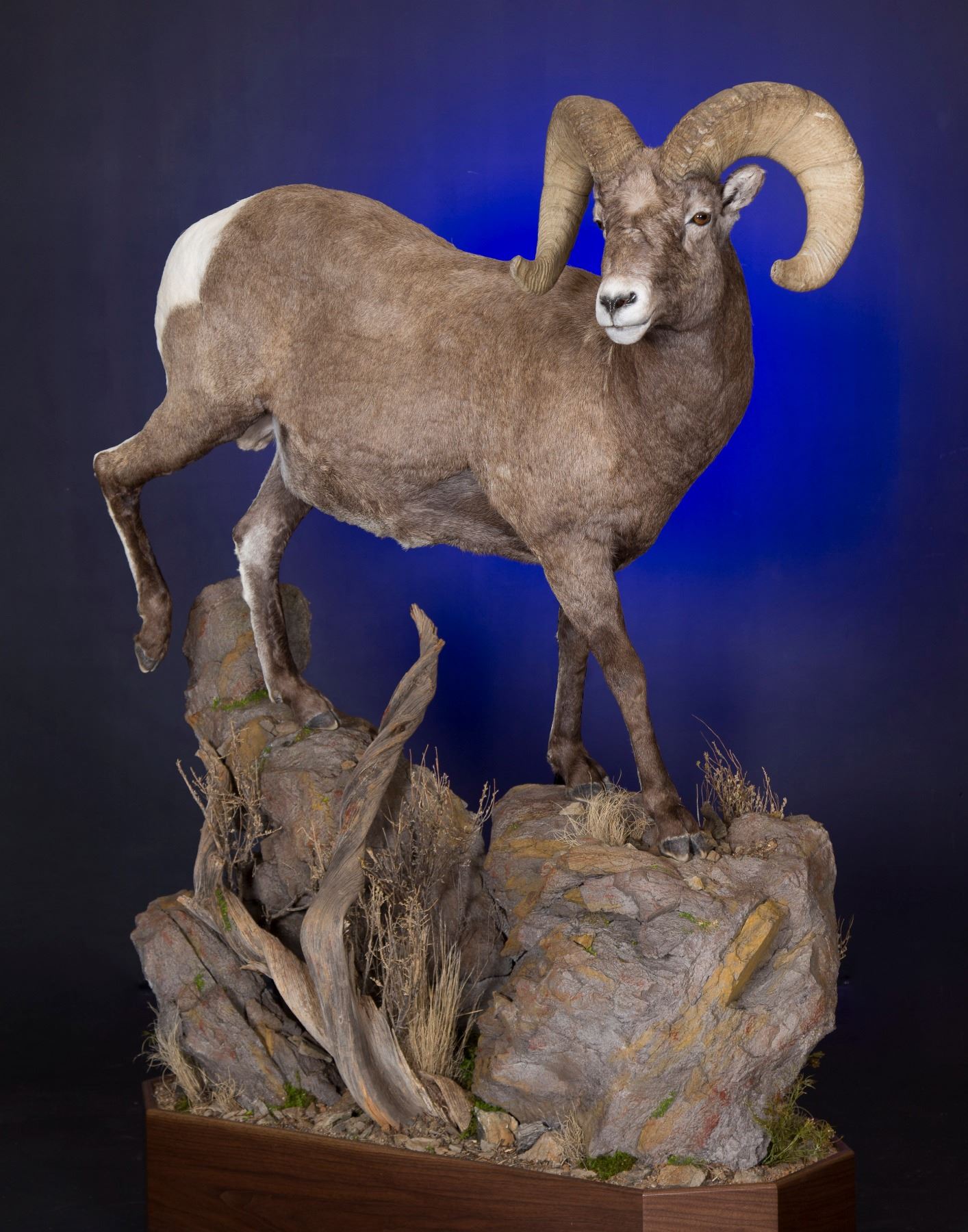 Zimmerman Wildlife has donated a life size North American sheep mount with a hardwood base and habitat. Shipping and crating are not included in this donation.