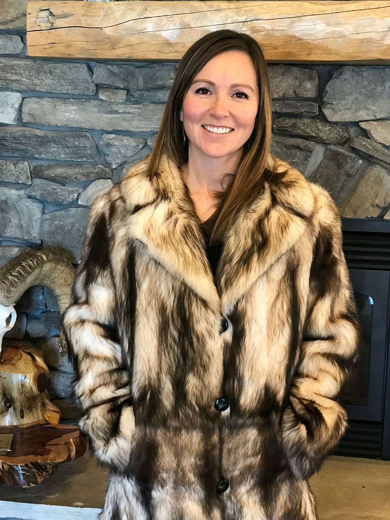 Donation: Style and glamour. This female Fitch skin on skin jacket will envelope you with its warmth and lush fur as you create your own statement of style. Size is not exchangeable.