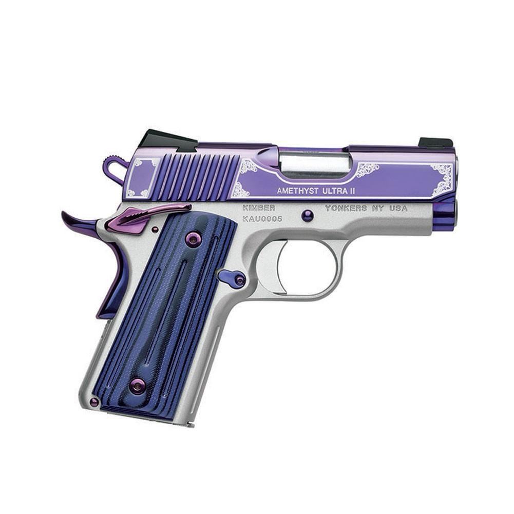 Donation: The Kimber Amethyst Ultra™ II is beautifully crafted with highly polished stainless steel slide with amethyst purple PVD coating and cut scroll engraving and border.