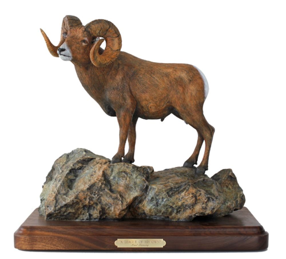 DONATION: Karl Lansing was raised in the majestic northern Rockies of his native British Columbia. Karl has been a taxidermist and involved in the outfitting and guide business from a young age. He truly knows his subjects inside and out. He has tackled two things he felt were missing in other sculptors’ work, anatomical correctness and realistic detail. This lamb tipped ram is a stunning sculpture. Karl has been gifted with the ability to capture the full realistic detail in his artwork. The base is equipped with a turntable for ease of display. This piece would enhance your trophy room, home, or office.