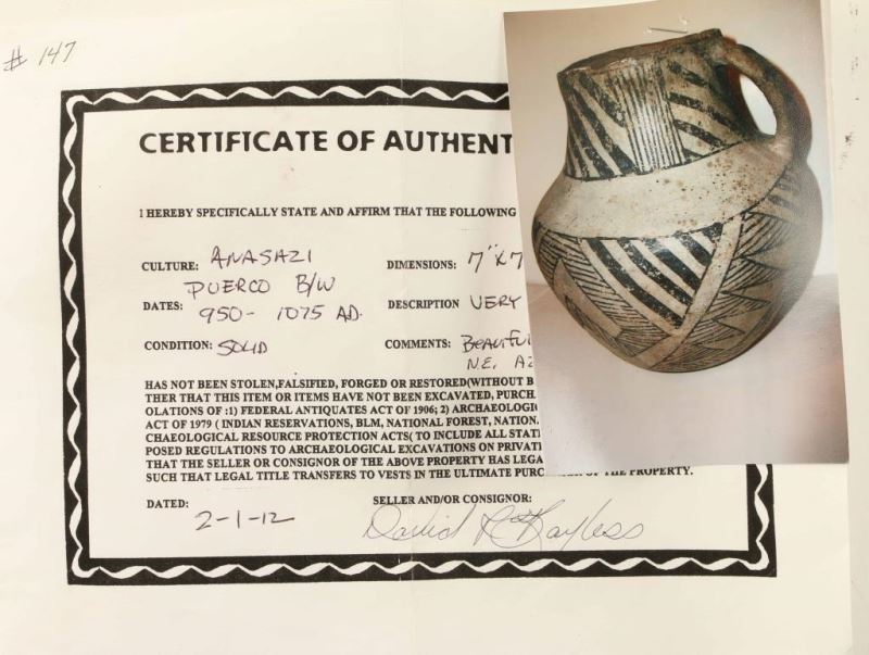 Lot 65 Anasazi Puerco Black & White Handled Vessel