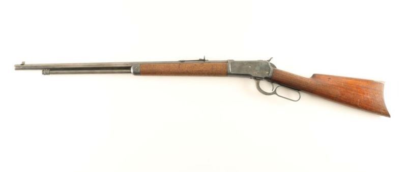 Antique lever action repeating rifle, circa 1893. 24 5/16" octagon barrel, shortened 7/8 length magazine tube, blade front sight, adjustable semi-buckhorn rear sight, crescent metal buttplate and smooth walnut stocks. The rifle bares a refinish and shows heavy wear on the portion of the barrel forward of the forend with rounded edges. The left side of the receiver appear to have been cleaned as it has horizontal scratches. Action is smooth, bore is good++ and wood stocks are good with a 1" crack on the right side of the wrist. Condition is fair. ***Antique Firearm***