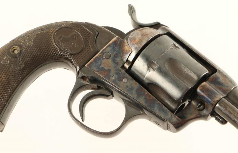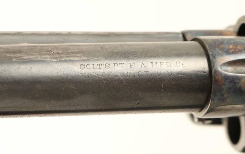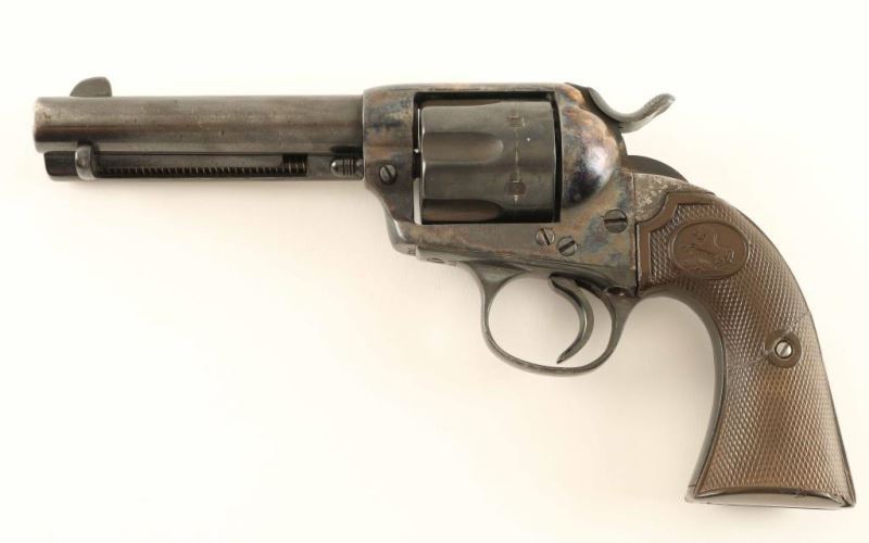 Refinished vintage single action revolver chambered in .41 Colt, circa 1901. Blued/case hardened finish, 4 3/4" barrel with two line address, matching serial numbers(including the grips), good marking overall, and heavily repaired two-piece hard rubber grips with Rampant Colt decor. Revolver exhibits approximately 60% of it's older refinish showing holster wear, scattered dents, pin prick pitting & losses on the backstrap, and some areas of light emerging surface rust in the cylinder flutes, on the hammer & on the butt. Action is strong with three clicks, bore is very good and the matching hard rubber grips are fair with semi-worn points. Condition is good as refinished. ***C&R Firearm*** ***Modern Firearm***