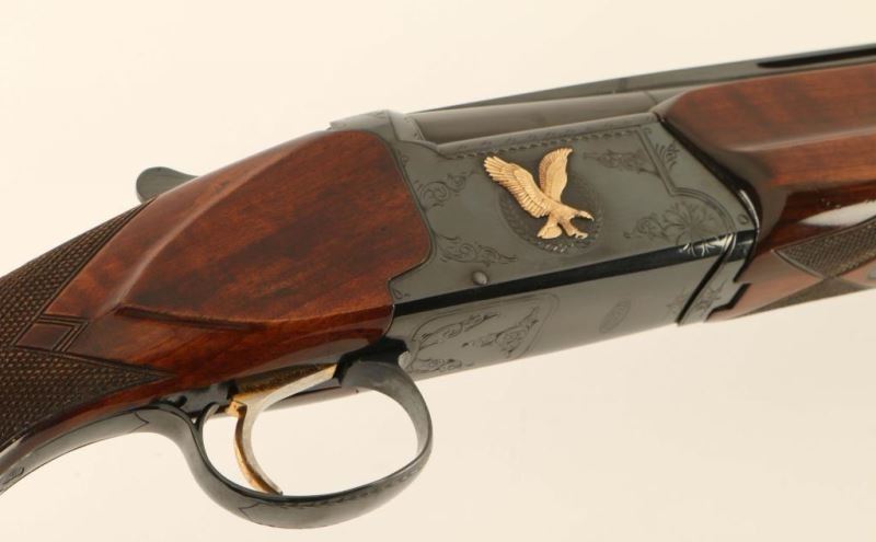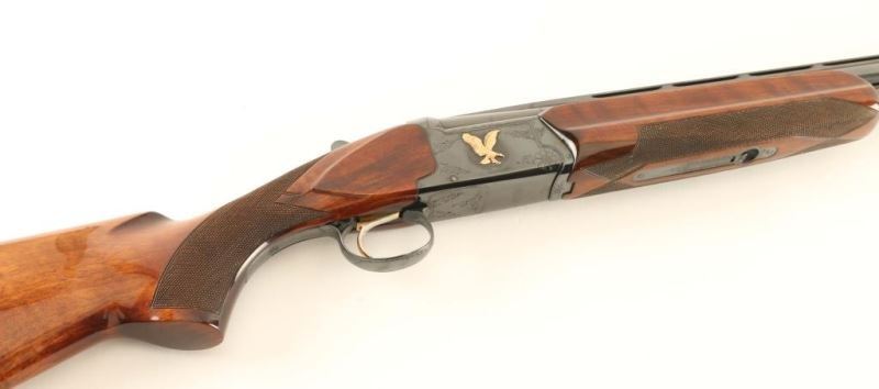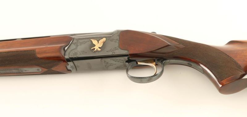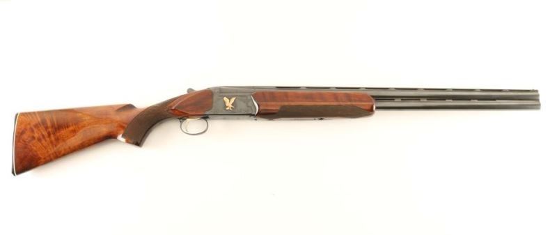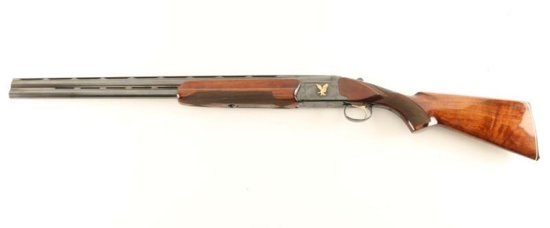 Japanese made over and Under 12 Ga. Imported by Kanematsu-Gosh USA of Arlington, IL. Shotgun 2 ¾ shells, high gloss checkered forend and stock, receiver and trigger guard are engraved, trigger is gold plated, bores are mirror bright, automatic tang mounted safety. Overall condition very-good; stock and forend exhibit dings which do not compromise the finish. *Modern Firearm*