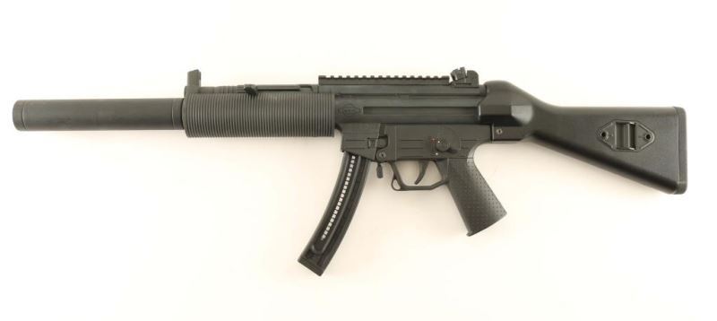 German made semi-automatic sporting rifle modeled after the HK MP5. Features a 16.25" barrel with faux suppressor, shrouded post front sight, multi-aperture rotating rear sight, scope rail, 22 round magazine, ambidextrous safety, smooth trigger, grooved rubber forend, black synthetic shoulder stock and black polymer lower receiver with pebbled pistol grip. Includes the manual, two spare magazines, and cleaning tools. Rifle exhibits approximately 94% of it's original finish showing scattered handling marks and scuffs. Action is smooth, bore is pristine, and stocks are near fine. Condition is very good+. ***Modern Firearm***