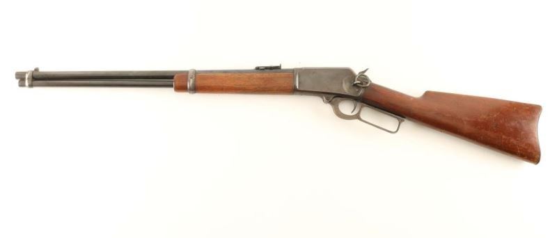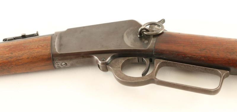 Vintage saddle ring carbine. Blued finish, 20" barrel, blade front sight, flip-up ladder rear sight, two barrel bands, drilled & tapped receiver, saddle ring, smooth trigger, knurled hammer spur, smooth walnut forend, and straight grip shoulder stock with metal carbine buttplate. The receive exhibits a nicely aged brown patina while the barrel & magazine tube display thinned original bluing which is turning to patina. Action is smooth, bore is very good and wood stocks are near good with flaking finish & several blemishes. Condition is very good. ***C&R Firearm*** ***Modern Firearm***