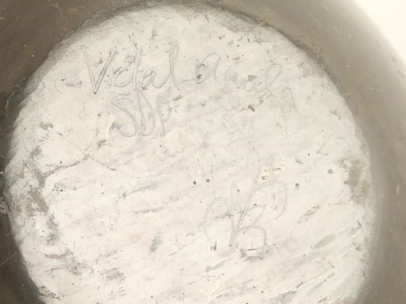 Hand signed on bottom 'Vidal Aguilar' with circular tone on tone design. Measures 17h x 14 1/2"dia