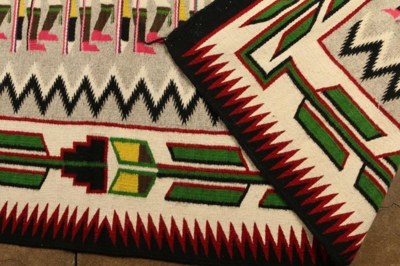 with center Kachinas with zig zag border, Very good condition, 91"X53".
