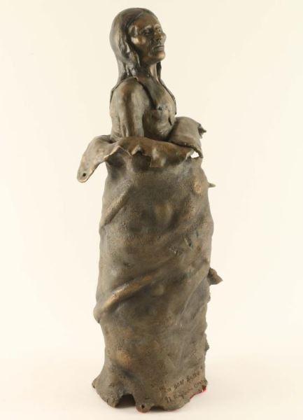 Depicting robed Indian signed Rayburn Orange "On Bear Butte". Measures 20"x6"