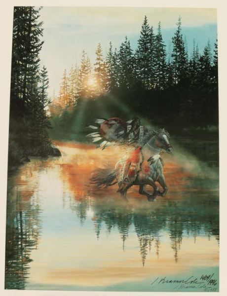 by Julie Kramer Cole "The Offering" 1409/1500. Includes certificate of authenticity on back. Unframed, wrapped on board. Measures 28"x12 1/2". Includes a book also by Cole and a small limited edition print that is also signed, 1409/1996 entitled "Water Vision". Measures 12"x9". Original price of book was $165.
