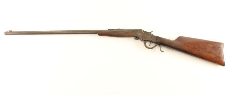 Vintage falling block block single shot rimfire rifle marketed by HSA & Co. under the name Rev-O-Noc, circa 1902-1915. Features a 24" octagonal take-down bbl, blade front sight, adjustable rear sporting sight, 's' shaped lever, smooth trigger, knurled hammer spur, checkered walnut forend and straight grip shoulder stock w/ smooth metal buttplate. Rifle exhibits an even brown patina on the receiver and a dark grey patina on the barrel with scattered pitting. Action is smooth, bore is good and wood stocks are fair with a repair to the wrist. Condition is fair. ***C&R Firearm***