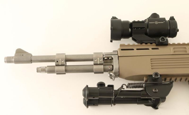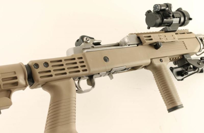 Barrel length: 18”, Manufactured 1993. Overall very-good condition. Includes a TAPCO stock with M4 style collapsible stock, Sight Mark red dot scope, bipod, and one fiver round magazine. *Modern Firearm*