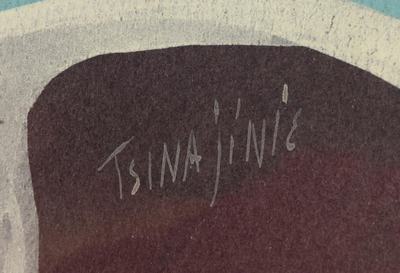 by indian artist Tsinajinie depicting a blue horse image size is 19X15. Born in Rough Rock, Arizona, Andy Tsinnajinnie was an Indian artist and illustrator who maintained a studio in Scottsdale, Arizona. He was a member of the Navajo Salt River Bend Indian tribe, and the translation of his last name, which has been spelled in several ways, is "Little Grey." He studied art at the Fort Apache School in Santa Fe, New Mexico, and graduated in 1936. He painted large murals for the WPA in Arizona and New Mexico including ones for Indian Schools. He served in the U.S. Army Air Force in the South Pacific, and after that was a full-time artist in Scottsdale. He did illustration for the Navajo Agency at Window Rock, for "Arizona Highways" and also for other magazines and books.