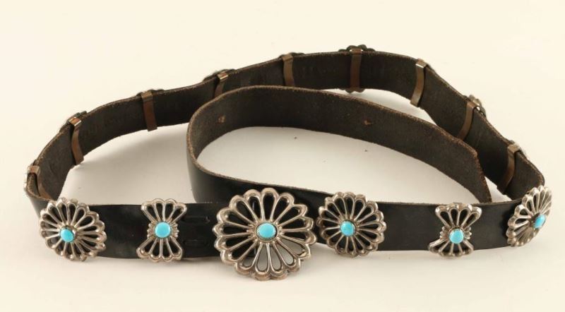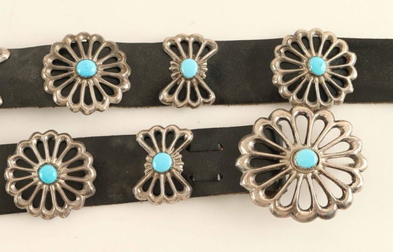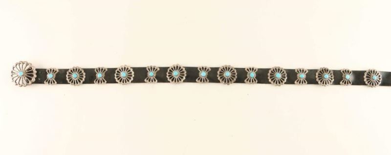 Lot 702 Sterling & Turquoise Sand Cast Concho Belt