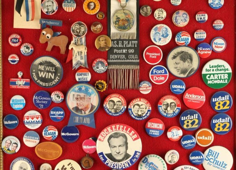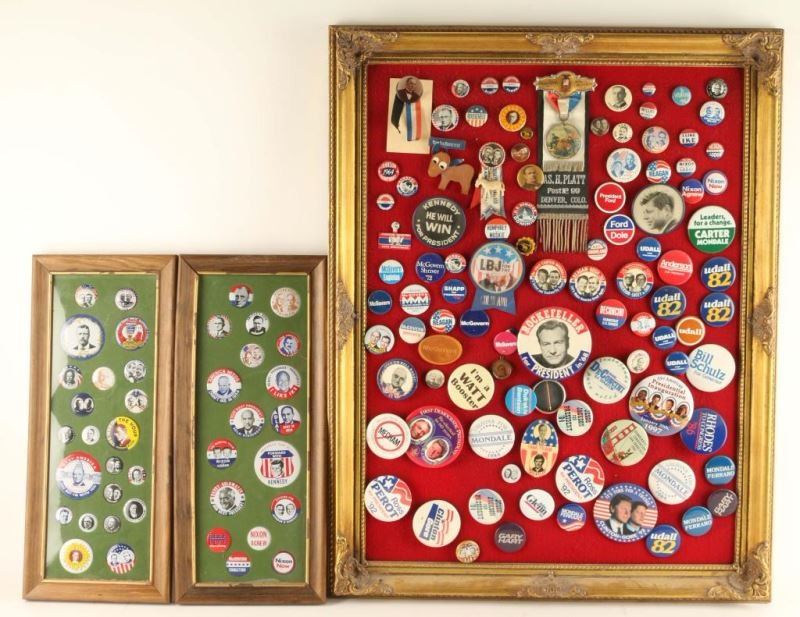 Three frames which include many buttons from Roosevelt to Clinton. All are in collector quality condition.