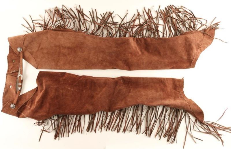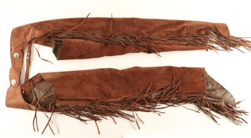 Brown suede leather with fringe. Some scratches on right leg, otherwise good. Measure 40" long.