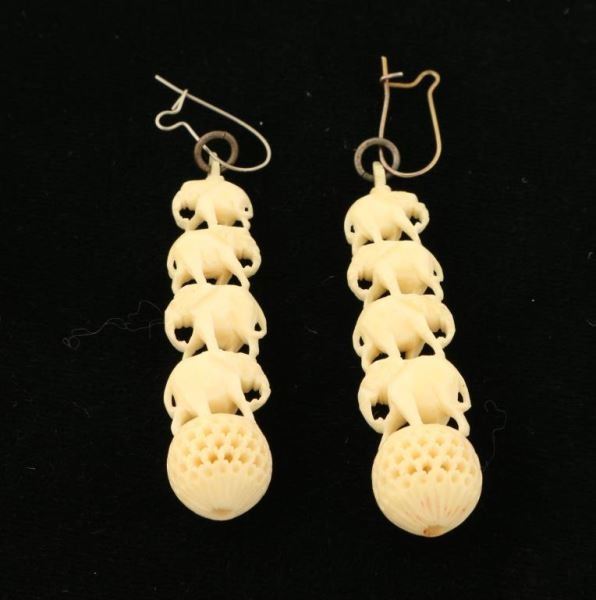 Four elephants stacked on top of a textured ivory ball. 1 3/4" long. NOT TO BE SOLD OUTSIDE OF THE STATE OF ARIZONA BY LAW AND COMMERCE.