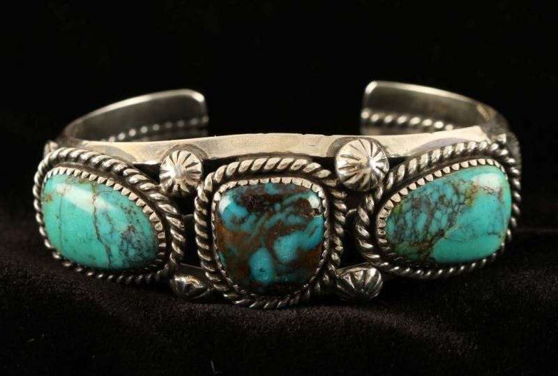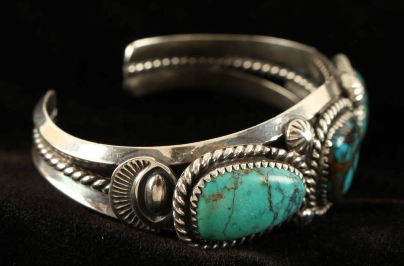 Lot 894 Native American Silver & Turquoise Cuff Bracelet