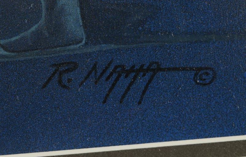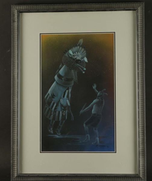 by Raymond Naha "Two Kachinas" signed, image measures 15"x10" in double mat and frame.