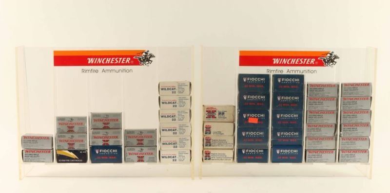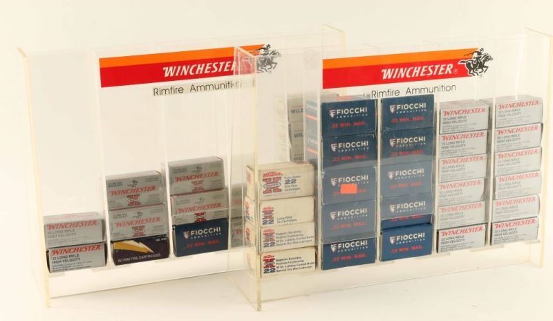 Winchester,Fiocchi,and Federal. In plexiglass Winchester display cases