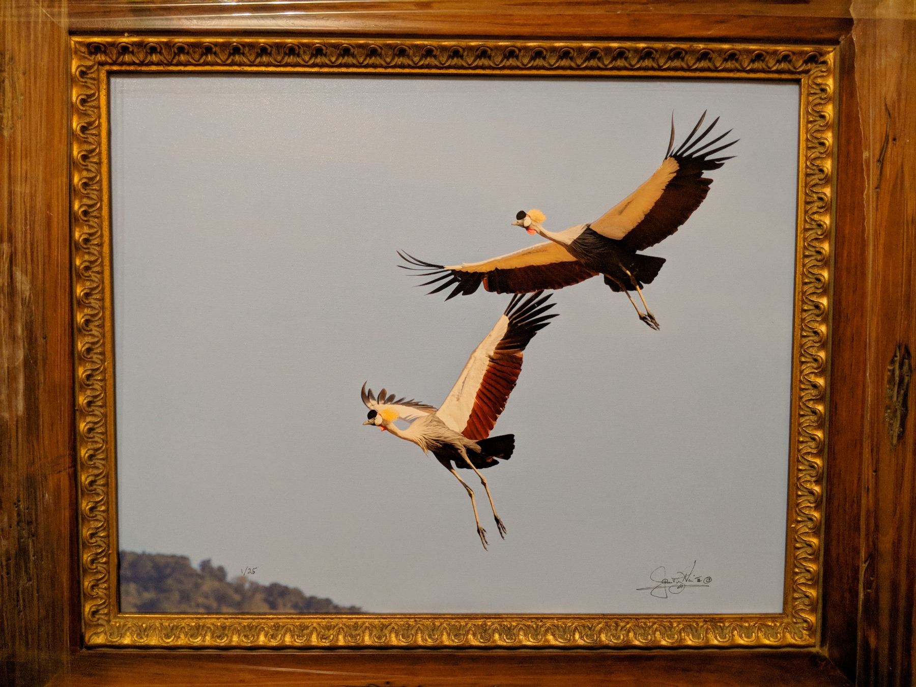 Longtime Houston Safari Club supporter, James Hines, has generously donated this silver paper photo, "Imperial Crowns in Flight." James has always had a keen eye for design, doing technical drawings and invention ideas in his spare time. After meeting his wife, wildlife artist Jan Martin McGuire, James began to have the opportunity to photograph wildlife in conjunction with their business. His immediate affinity for the genre was evident with Jan using many of his photos for reference for her fine art paintings. HSC References: Wendy Barnhart, John & Melanie Pepper. Houston Safari Club thanks James Hines for this 100% donation.