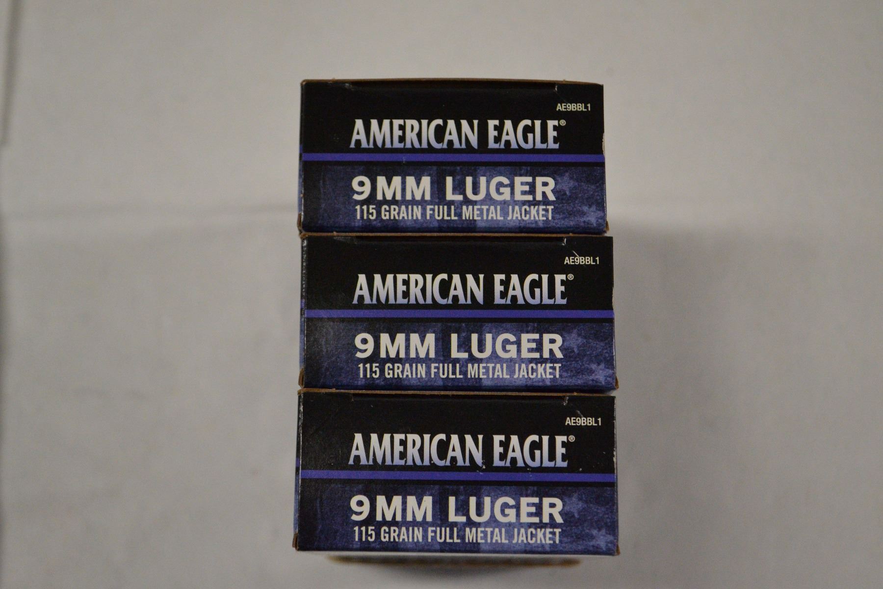 Lot 115 150 ROUNDS AMERICAN EAGLE 9MM LUGER 115 GRAIN FMJ